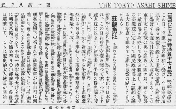 こちらはその入城式を報じた朝日新聞1937年12月18日付夕刊:
