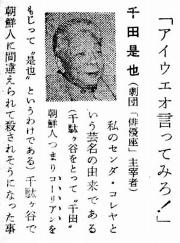 94年前の今日、1923年9月2日は、関東大震災後の朝鮮人虐殺がいよいよ本格化した忌むべき日でもある。 この日、朝鮮人と間違えられて危うく殺されそうになった日本人の一人に、俳優の千田是也氏がいる。氏の証言映像が昨年放映されたETV特集「関東大震災と…