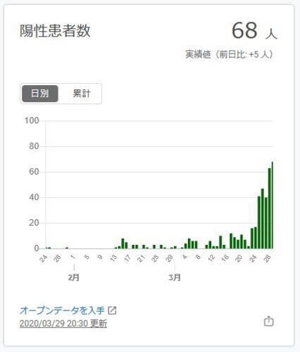 ここ数日、東京都の新型コロナウイルス感染者数が異常に増えている。 www3.nhk.or.jp 2020年3月29日 16時04分 東京都の関係者によりますと、29日新たに都内で1日に確認された数としてはこれまでで最も多い68人が、新型コロナウイルスに感染していることが確…