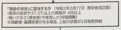厚労省、ようやく受診目安の見直しへ 相談から検査までのフローを示すマニュアルの内容 ステップ1:発熱4日ルール ステップ2:厚生労働省令で定める「擬似症」基準 ステップ3:健康安全課での再チェック これでは関門が多すぎて検査までたどり着けない …