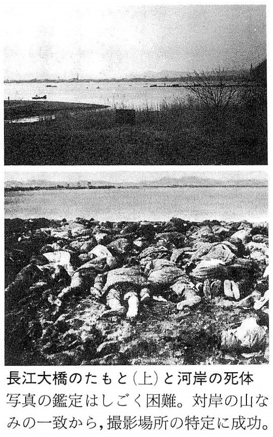 産経が言うような、中国軍の同士討ちその他の結果とする説には根拠らしい根拠がなく、横たわる遺体の数から見て、恐らく揚子江岸で何度となく繰り返された比較的小規模な虐殺の一つの跡だったのだろう。