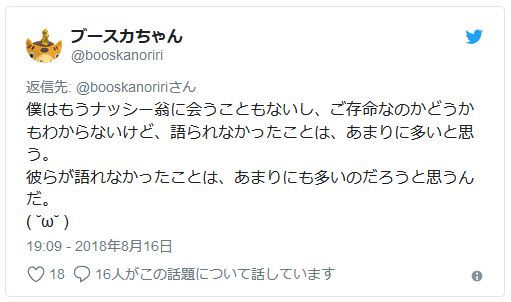 — ブースカちゃん (@booskanoriri) 2018年8月16日