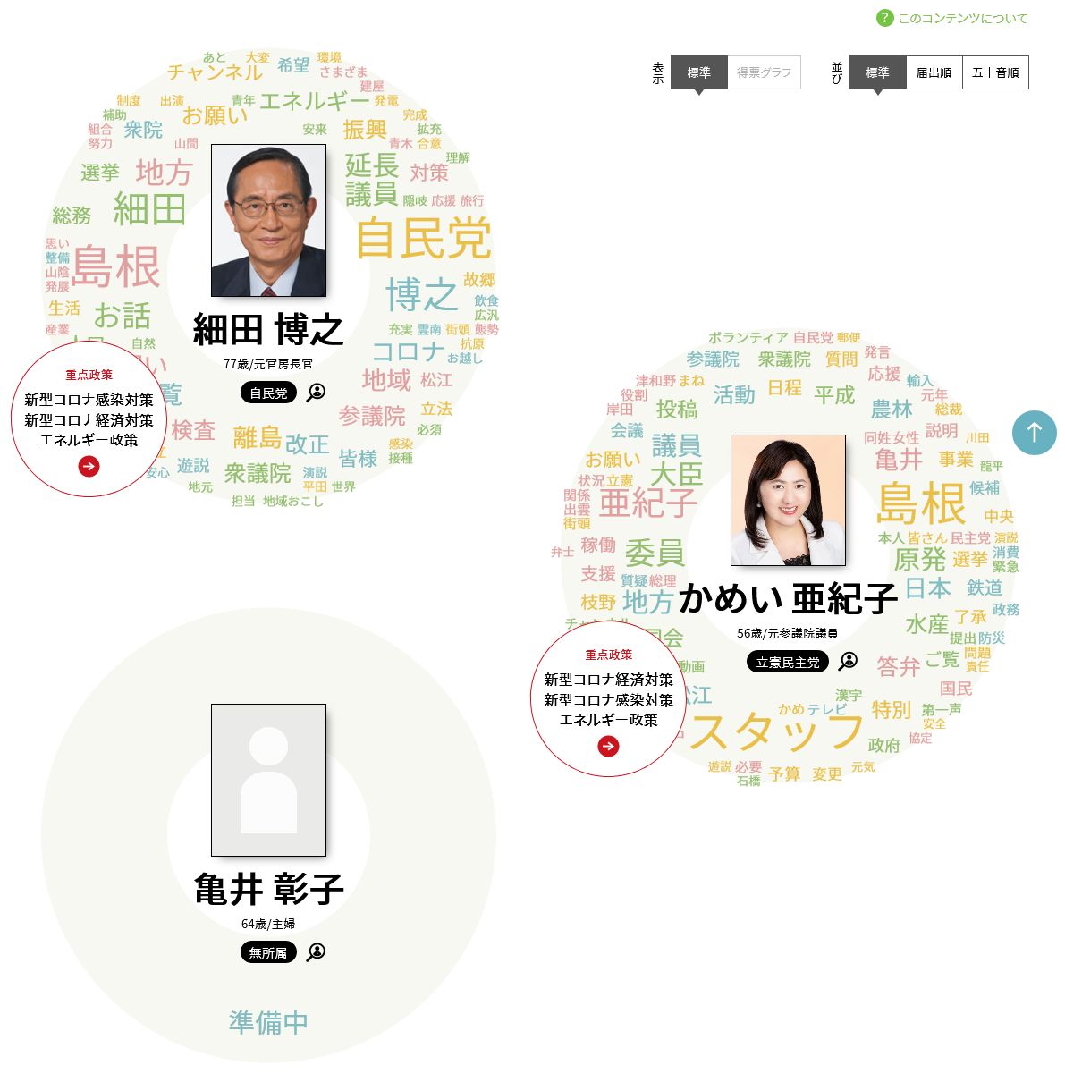 この二人目の「かめいあきこ」氏、64歳主婦というだけで、政策もなにも一切不明である。